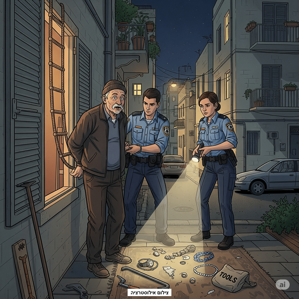 תפיסת פורץ בן 65 בשכונת הצפון הישן בתל אביב – המשטרה עצרה אותו על חם עם תכשיטים וכלי פריצה.